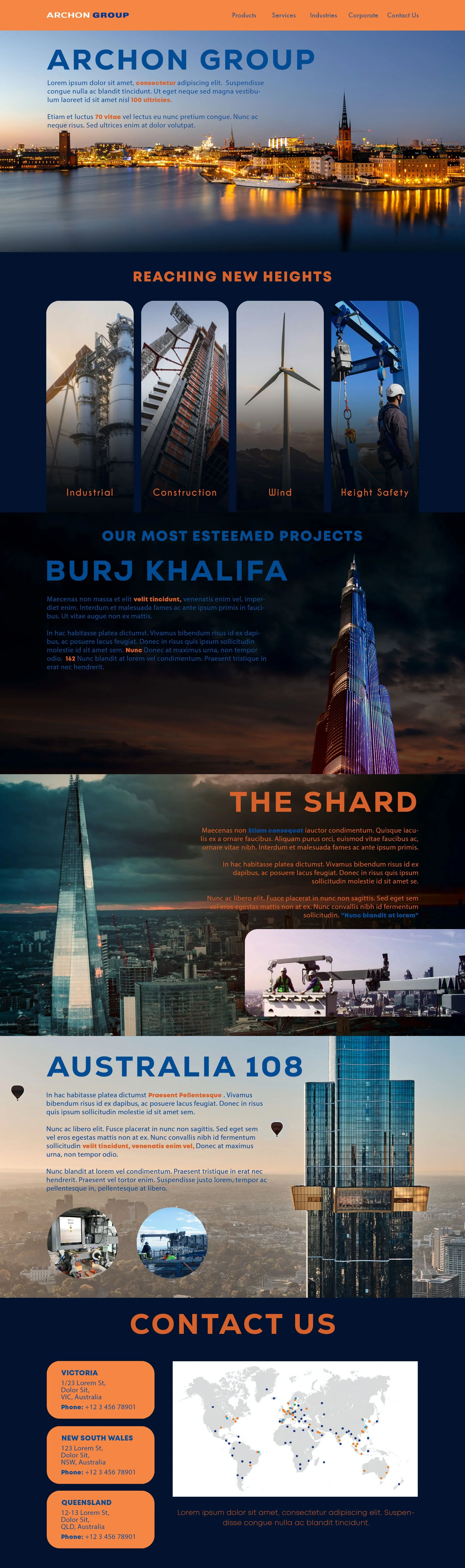 A web design concept showcasing a corporation’s diverse range of construction related products and services, presented through a sleek and contemporary interface - with names and text edited for confidentiality.